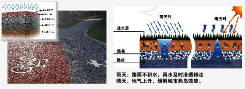 彩色透水地坪是一種新型的環(huán)保地坪,它擁有約20%孔隙,下雨時能夠快速補充城市地下水資源,并能吸收車輛行駛產(chǎn)生噪音,能減少地面陽光反射熱能,降低地面溫度,減少“熱島效應(yīng)”。